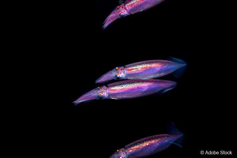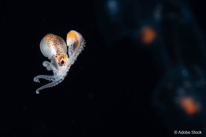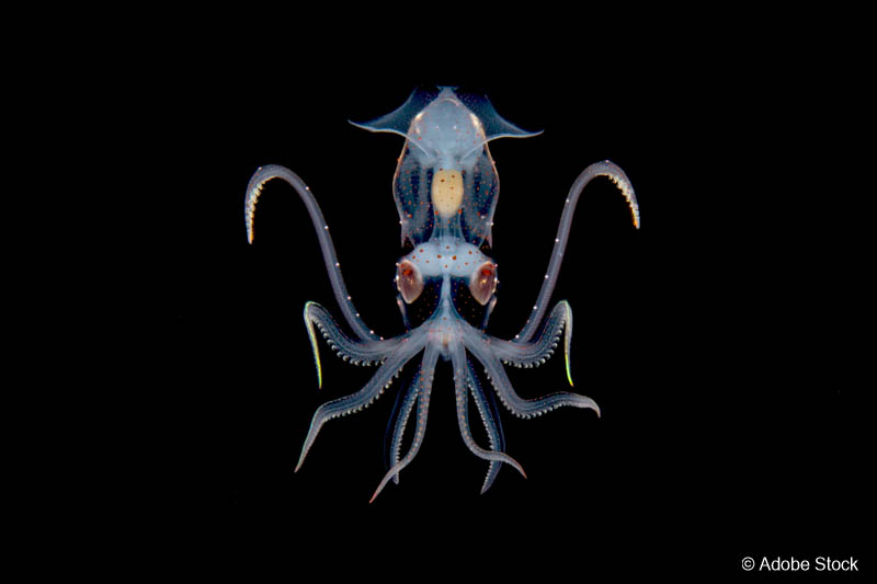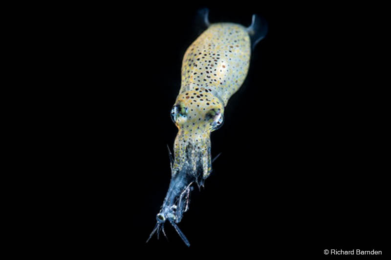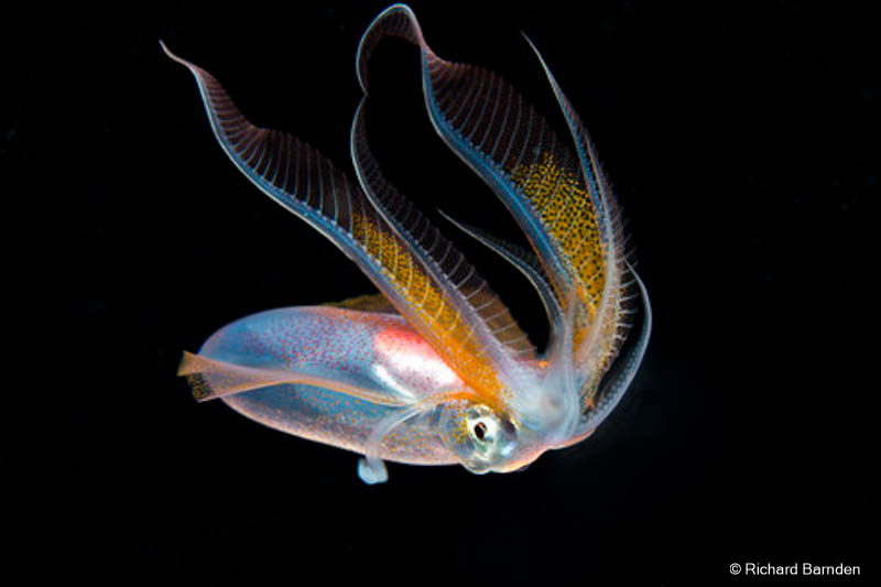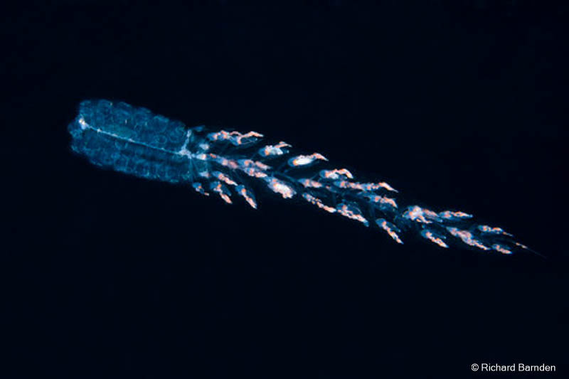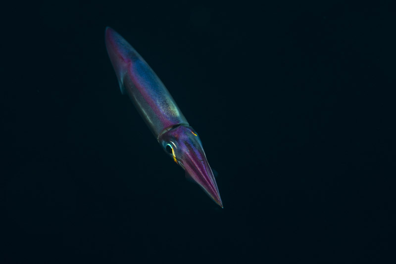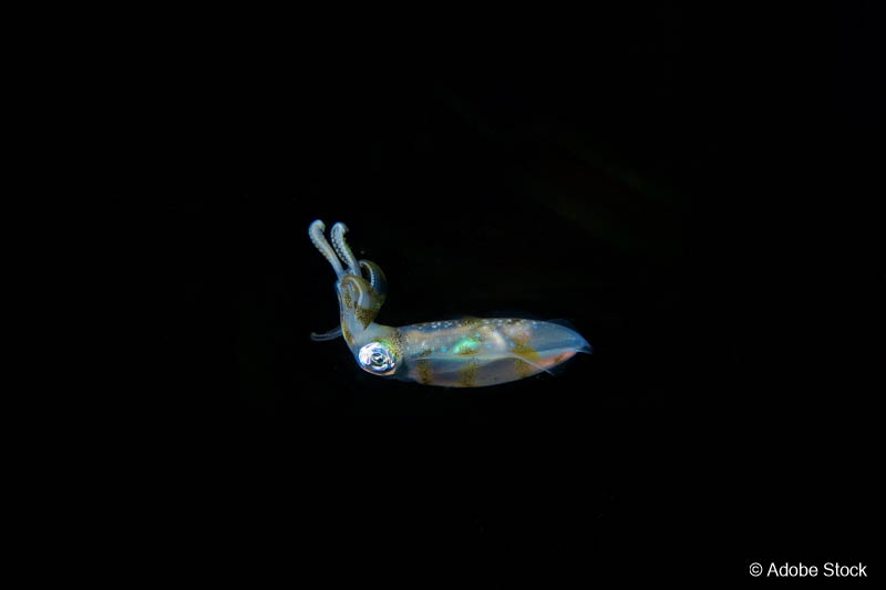 Blackwater Diving eröffnet eine erstaunliche Vielfalt an Meereslebewesen. Die meisten sind klein (3–6 cm), wie Plankton, Fischlarven oder Jungtiere. Doch auch Quallen, Würmer, Tintenfische und Salpen sind häufig zu sehen. Mit etwas Glück zieht das Licht auch größere pelagische Tiere an, darunter gelegentlich Haie. Jeder Tauchgang ist ein einzigartiges Erlebnis, bei dem man Lebewesen entdecken kann, die man vielleicht nie wieder sieht.