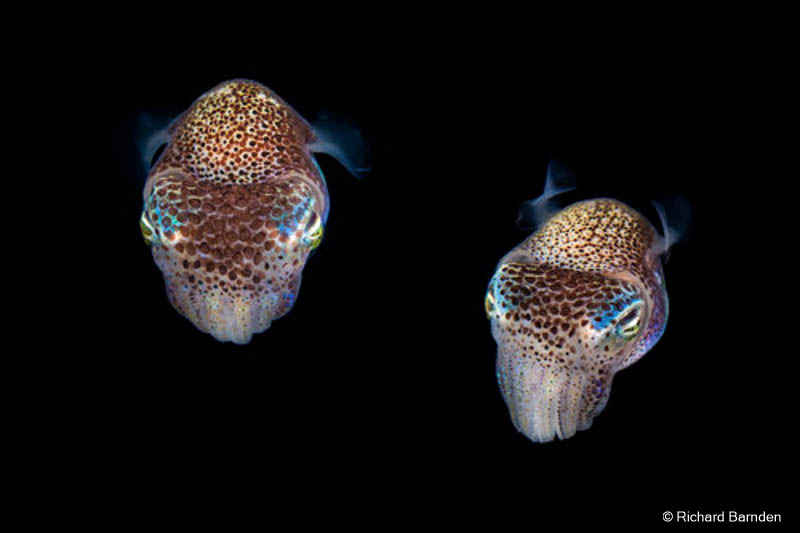 Richard Barnden führt und fotografiert seit fast zwanzig Jahren Meereslebewesen, vor allem im Pazifischen Ozean. Seine Leidenschaft gilt Laichansammlungen und Blackwater-Nachttauchgängen. Nachdem er eine große Sammlung von Daten und Fotos von Laichansammlungen angelegt hatte, verbrachte er die letzten zehn Jahre damit, diese und ihre Vorhersagbarkeit zu erforschen. Im Jahr 2015 stellte Richard ein bahnbrechendes Tauchteam zusammen, um den Zeitpunkt des Laichens des Getarnten Zackenbarsches (Epinephelus polyphekadion) in Palau zu bestimmen, wofür er fast sieben Jahre brauchte. Drei Jahre später, im Jahr 2018, stellte Richard auch ein Team von JJ-CCR Kreislaufgerätetauchern zusammen, um zu versuchen, einige der Ähnlichkeiten und Unterschiede zwischen derselben Zackenbarschart, die in Fakarava, Französisch-Polynesien, und im Ulong-Kanal, Palau, laicht, aufzudecken. Obwohl er in erster Linie das Laichen der Zackenbarsche dokumentieren wollte, war Richard auch in Fakarava, um das Jagdverhalten der Haie zu beobachten, das Laurent Ballesta und sein Team einige Jahre zuvor entdeckt hatten. Diese Expedition führte dazu, dass Richard mit seiner Aufnahme „The Gauntlet“, die zwei Graue Riffhaie zeigt, die nachts einen verängstigten Papageienfisch zerfleischen, zum Unterwasserfotografen des Jahres und zum britischen Unterwasserfotografen des Jahres 2019 gewählt wurde. www.richardbarnden.com/blackwater-1