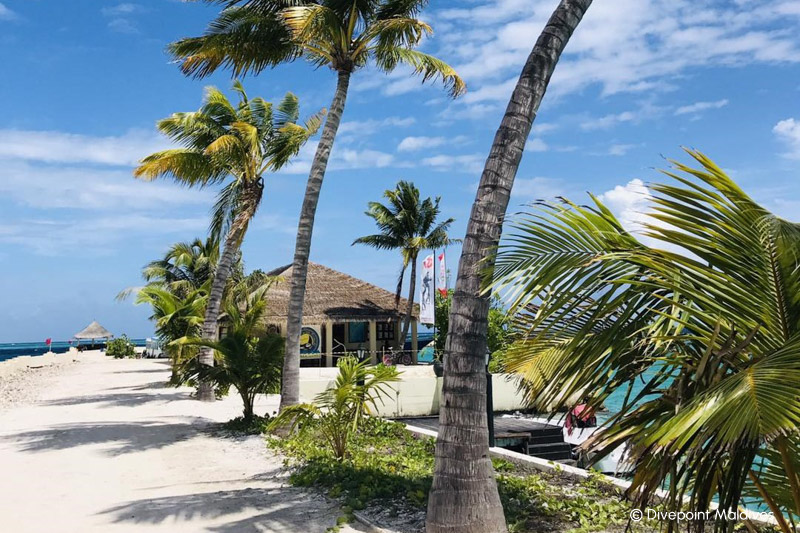 Das großzügige Dive Center mit Shop, klimatisierten Klassenzimmern und Büroräumen, liegt am Süd-West-Steg der Insel, direkt am Hafen. In Sichtweite von Pool und Wassersport Center hast du direkten Zugang zu den Tauch Dhonis und zum abwechslungsreichen Kanal-Hausriff.