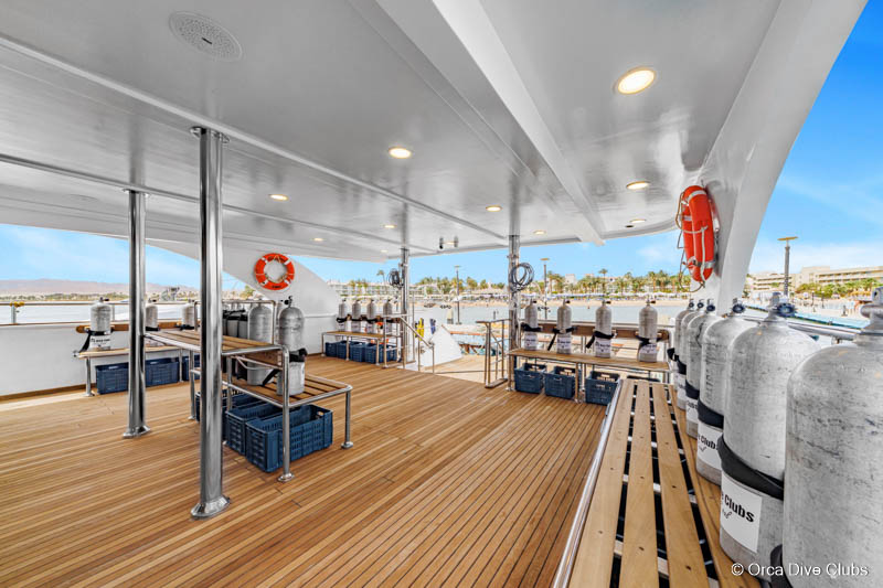 Der Tauchbetrieb an Bord der Alia Soul ist auf höchsten Komfort, Sicherheit und Effizienz ausgerichtet. Das großzügige Tauchdeck befindet sich auf dem Hauptdeck am Heck des Schiffes. Durch die jüngste Verlängerung des Rumpfes wurde zusätzlicher Platz geschaffen, der eine weitläufige Plattform ermöglicht. Diese bietet ausreichend Bewegungsfreiheit für die Vorbereitung und Nachbereitung der Tauchgänge. Jeder Gast hat einen eigenen Stauraum für seine Ausrüstung, sodass Ordnung und Übersichtlichkeit jederzeit gewährleistet sind.
