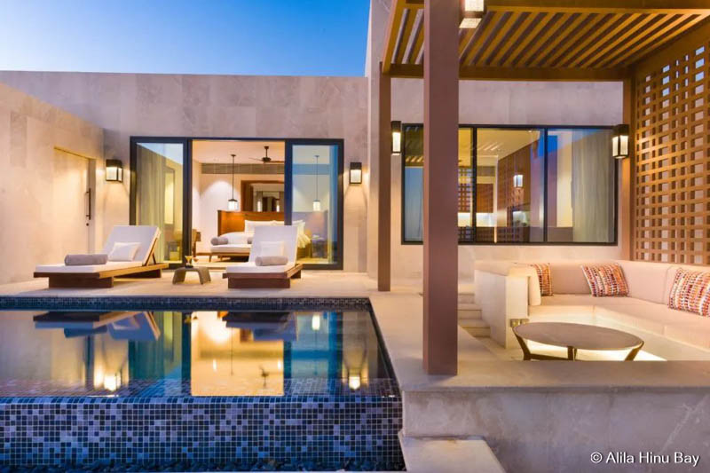 Das Alila verfügt über 96 Zimmer und 16 Poolvillen. Die Zimmer und Villen kombinieren modernes Design, hohen Komfort und ein individuelles Wohnerlebnis. Die Unterkünfte sind zwischen 60 und 175 m² groß und bieten verschiedene Optionen: Zimmer mit Terrassen, Meerblick oder Lagunenblick sowie private Poolvillen. Die Deluxe Pool Villen bieten dabei mit 175 m² besonders viel Platz und einen luxuriösen Komfort.