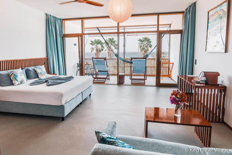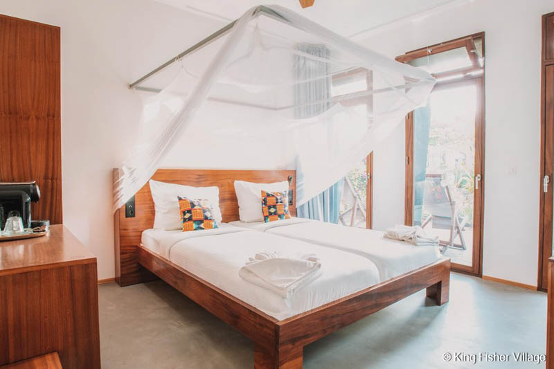 Das „Kingfisher Village“ besteht aus 10 individuell eingerichteten Wohnungen und 5 Zimmern mit 40 Betten. Jedes Haus/Appartement trägt seinen eigenen Namen und ist individuell nach europäischen Standards gestaltet. Sie verfügen alle über Kalt- und Warmwasser, Ventilatoren, Safe und eine Terrasse mit Meerblick und Liegestühlen. Der direkte Zugang zum Meer erfolgt über eine Treppe.