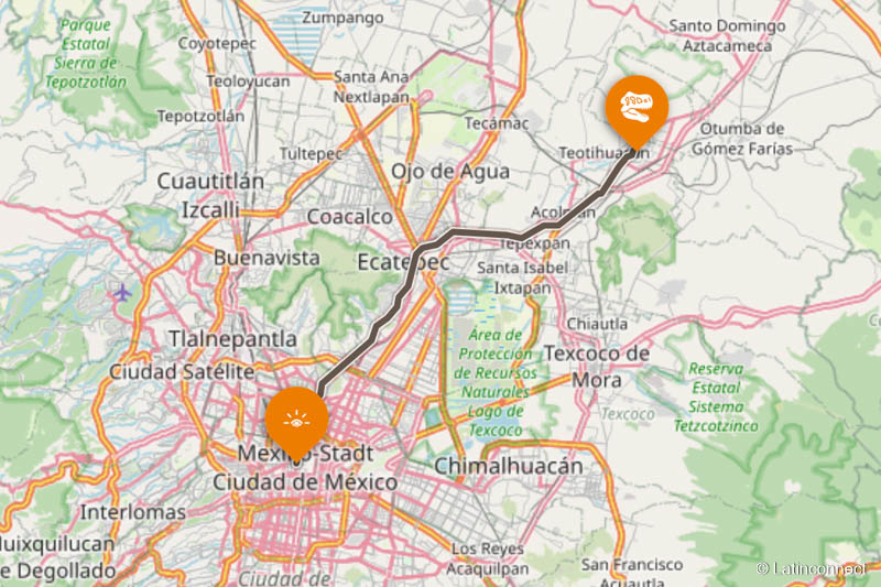 Mexiko-Stadt erreichst du bequem per Flug. Von Wien aus gibt es keine Direktflüge, aber zahlreiche Verbindungen mit einem Zwischenstopp – z. B. über Frankfurt, Paris oder Madrid. Die Flugzeit beträgt je nach Verbindung ca. 14–16 Stunden. Vom Flughafen Mexico City (Benito Juárez International Airport) gelangst du mit einem privaten Transfer oder Taxi in ca. 20–40 Minuten ins Stadtzentrum, abhängig vom Verkehr. Viele Hotels befinden sich in den zentralen Vierteln Roma, Condesa oder im historischen Zentrum – ideal für den Start deiner Tagestour.