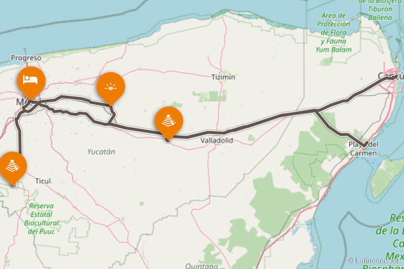 Die Mini Yucatán Rundreise beginnt und endet in Cancún oder der Riviera Maya – beide Regionen sind gut erreichbar. Vom Flughafen Cancún erreichst du dein Hotel in Cancún oder in der Riviera Maya bequem per organisiertem Transfer, Taxi oder Mietwagen. Solltest du bereits in einem Hotel in Cancún oder der Riviera Maya untergebracht sein, wirst du dort direkt zur Rundreise abgeholt.