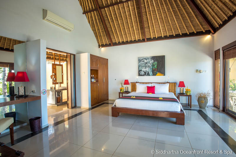 Das Siddhartha Oceanfront Resort & Spa liegt in Kubu, einem kleinen Ort an der unberührten Nordostküste Balis. Die Anlage erstreckt sich über 2,4 Hektar mit mehr als 180 Metern direkter Meereslinie und wurde mit viel Rücksicht auf die natürliche Umgebung gestaltet – viele der ursprünglichen Bäume wurden erhalten und in die Architektur integriert.