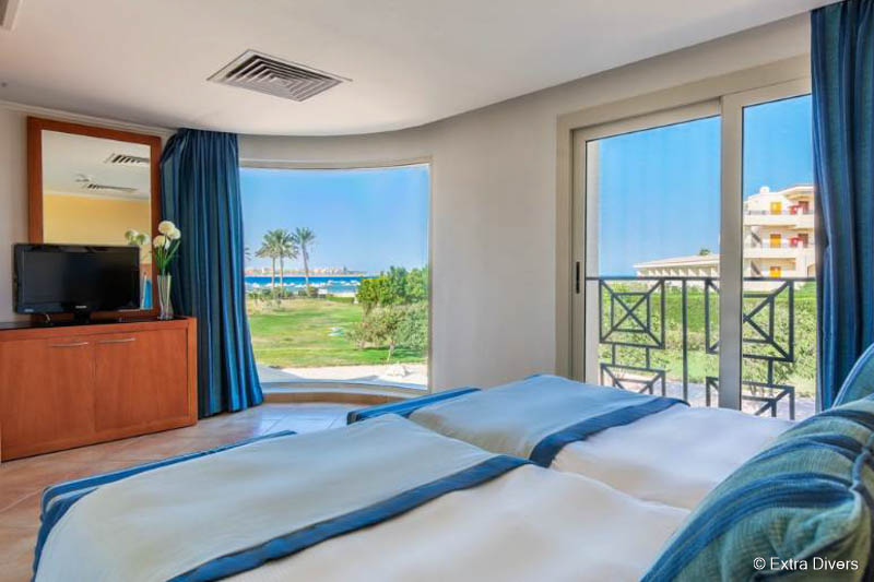 Die komfortabel ausgestatteten Zimmer verfügen über Dusche, WC, Föhn, Telefon, Safe, LCD-TV, Minibar (1 x pro Aufenthalt mit Softdrinks, täglich mit Wasser aufgefüllt), Klimaanlage/Heizung und Balkon/Terrasse zur Gartenseite. Bei gleicher Ausstattung ist eine begrenzte Anzahl von Economy-Zimmern buchbar. Zimmer zur Strandseite oder mit Meerblick sind gegen Aufpreis buchbar. Außerdem sind Junior Suiten oder Premium Deluxe Doppelzimmer buchbar. Einzelzimmer sind Doppelzimmer zur Alleinbenutzung. Die Familienzimmer haben einen Gartenblick und verfügen jeweils über 2 Schlafzimmer und einen gemeinsamen Eingangsbereich.