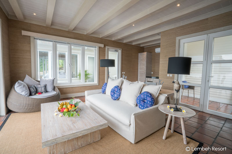 Das Resort verfügt insgesamt über 20 Cottages: 6 Garden View Rooms, 8 Premium Luxury Cottages, 5 Hillside Luxury Cottages (ab 1.10.25 auch Premium Luxury Cottages), sowie eine exklusive Cliffside Villa mit privatem Pool. Die Garden View Rooms bieten auf circa 41 m² entweder Kingsize‑ oder Twin Betten, eine überdachte Veranda mit Blick in den Garten, eine Indoor‑Dusche mit warmem Wasser, Klimaanlage, Gratis‑WLAN, Minibar, Safe, Tee‑/Kaffee‑Station und Trinkwasserspender. Sie eignen sich besonders für Alleinreisende oder Budget‑Taucher und liegen nahe am Restaurant und Tauchzentrum. Die Premium Luxury Cottages (etwa 60 m² für drei Personen) bieten moderne, helle Einrichtung, eine große Veranda mit Meerblick, ein halb‑offenes Badezimmer mit Regen‑ und Outdoor‑Dusche sowie alle Standard‑Ausstattungsmerkmale wie Klimaanlage, Minibar, Safe, WLAN und heißes Trinkwasser. Die absolute Premium‑Unterkunft bildet die Cliffside Villa mit etwa 124 m² für bis zu drei Personen: ein Wohn‑ und Schlafzimmer, überdachte Terrasse plus Infinity‑Pool, Butler‑Service, Minibar inklusive, Nespresso‑Maschine, Flachbild‑TV, Bluetooth‑Lautsprecher, private Badezimmer mit Innen‑ und Außendusche, zweimal Waschbecken, elegante Einrichtung, täglicher Room‑Service und Zimmertelefon.