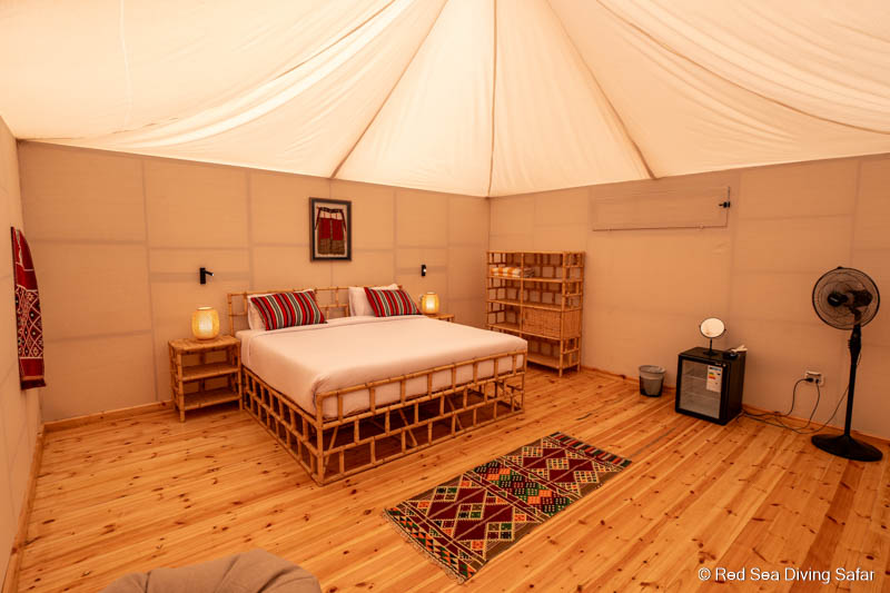 Die Superior Tents sind ca. 35 m² groß und mit Doppeltbett oder 2 Einzelbetten ausgestattete. Sie besitzen handgefertigte Möbel, Beleuchtung, Stromanschluss, einen Sitzbereich draußen mit Meerblick und ein im Gegensatz zu den Royal Tents ein eigenes Bad.