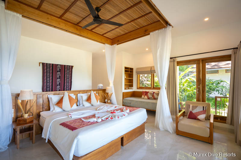 Das Murex Bangka liegt an einem palmengesäumten weißen Sandstrand und ist eines von nur wenigen Tauchresorts auf der Insel. Massentourismus ist hier ein Fremdwort. Du kannst die Seele in der Hängematte baumeln lassen, schwimmen oder schnorcheln im kristallklaren Wasser vor dem Resort, oder die Gegend mit dem Paddelboard erkunden. Sensationelles Tauchen am Hausriff oder zahlreichen Top-Tauchplätzen, die in kurzen Bootsausfahrten zu erreichen sind.