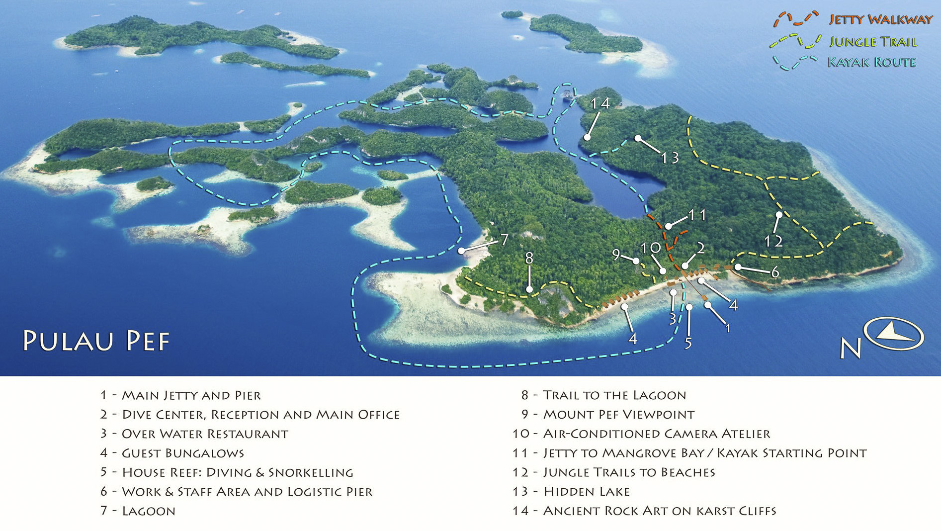 Das ganzjährig geöffnete Resort Raja4Divers liegt auf der kleinen privaten Insel Pef, im Gebiet von Raja Ampat. Die Eigentümerin Maya aus der Schweiz hat mit dem Bau des Resorts im Papua Stil einen langgehegten Traum erfüllt und bietet abseits des Massentourismus ihren Gästen ein kleines familiäres und komfortables Tauchresort direkt an einem palmengesäumten Sandstrand.