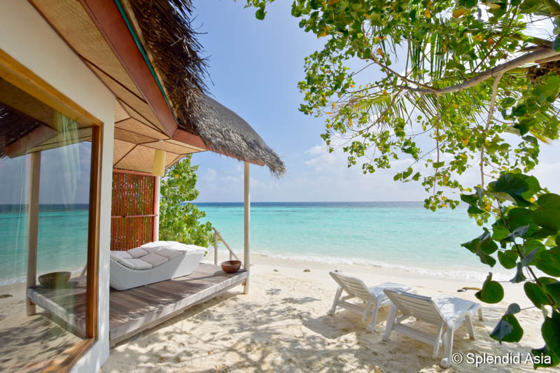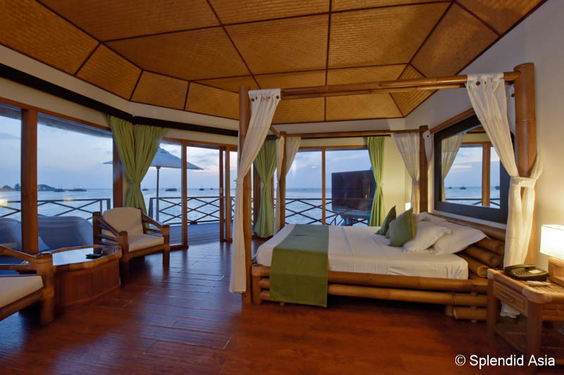 Die 84 Zimmer sind komfortabel ausgestattet mit Badewanne, separater Dusche, Klimaanlage, Kühlschrank, TV, Haartrockner, Telefon sowie Tee- und Kaffeezubehör. Die 30 Beach Bungalows (45 m²) liegen direkt am Strand und bieten eine Sonnenterrasse mit Liegestühlen. Die 15 Semi-Water Bungalows (45 m²) sind auf Stelzen am Strand gebaut und verfügen über eine großzügige Terrasse über dem Wasser mit direktem Zugang zur Lagune. Die 39 Water Bungalows (45 m²) stehen vollständig auf Stelzen im Wasser und sind über einen Steg mit der Insel verbunden.
