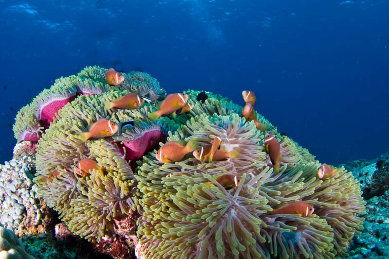 Rund 15 Tauchspots werden angefahren, die du per Speedboot erreichst. Hier erwarten dich unberührte Riffe mit einem beeindruckenden Fischreichtum und vielfältigen Highlights. Die farbenfrohen Weichkorallen beherbergen faszinierende Meeresbewohner – von unterschiedlichen Muränen, Oktopussen und Hummern bis hin zu Krebs- und Shrimpsarten, Sepien, Seepferdchen und prächtigen Nacktschnecken. Ob Makroliebhaber oder Fan von Großfischbegegnungen, wie Leopardenhaien, Schildkröten oder Adlerrochen, hier kommst du voll auf deine Kosten. Mit etwas Glück triffst du sogar auf Mondfische oder Walhaie, die zwischen Januar und April in der Region anzutreffen sind.