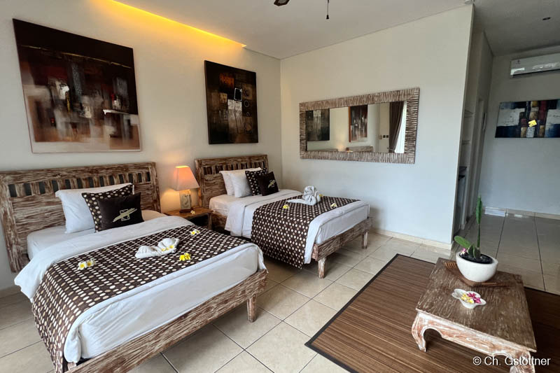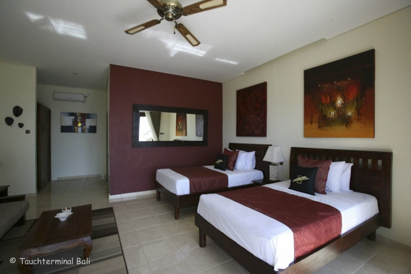 Die Kombination aus direktem Zugang zu diesen Tauchplätzen, der ruhigen Lage am Meer, dem Blick auf den Gunung Agung und der familiären Atmosphäre des Resorts schafft ein besonderes Erlebnis – sowohl unter Wasser als auch an Land. Wer Tauchen mit Komfort, Privatsphäre und einem authentischen Bali-Flair verbinden möchte, findet hier den perfekten Ort.