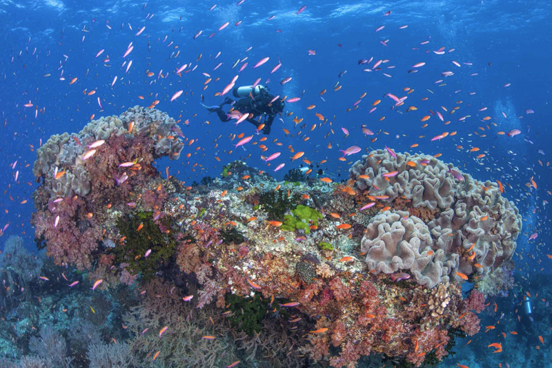 Für Taucher gilt Fiji als eines der besten Weichkorallenparadiese weltweit. Besonders farbenprächtig sind die Riffe rund um Taveuni – allen voran das Rainbow Reef in der Somosomo-Straße. Die Tauchplätze dort bieten beeindruckenden Korallenbewuchs und eine abwechslungsreiche Unterwasserlandschaft. Auch die Mamanuca- und Yasawa-Inseln nahe Viti Levu sind beliebte Tauchregionen, wenn auch weniger spektakulär als Taveuni.
