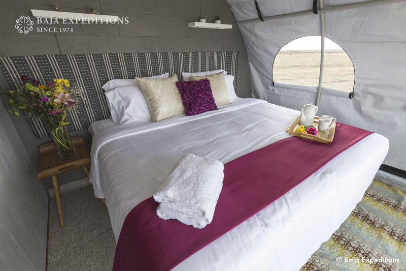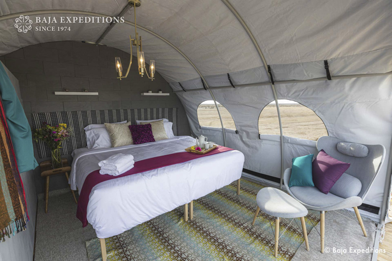 Jeden Winter wandern die Grauwale in die warmen, flachen Gewässer der San Ignacio Lagune, um sich zu paaren und zu kalben. Bei dieser Wildnis-Glamping-Expedition kannst du diesen sanften Giganten von Angesicht zu Angesicht begegnen. Sie rollen sich sogar auf den Rücken, damit du ihren Bauch kraulen kannst.