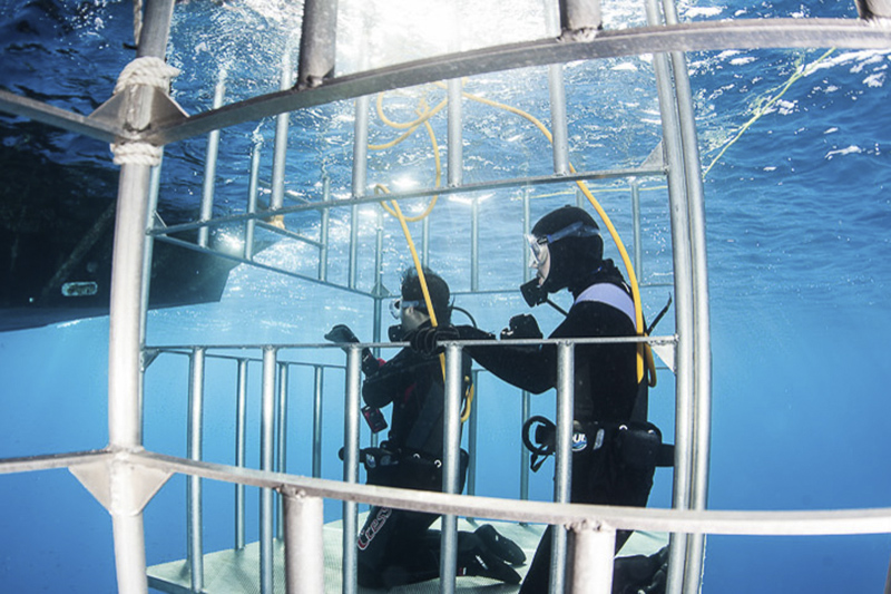 Auf eine Tiefe bis zu 11 m werden 2 Tiefenkäfige herunter gelassen, ein spektakuläres Abenteuer beginnt beim ersten Eintauchen oder den Beobachtungen vom Schiff aus.