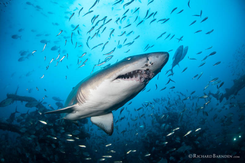 Mit ihrer bizarren Zahnstellung wirken Sandtigerhaie furchteinflößend, verhalten sich jedoch meist ruhig. Gute Plätze sind Queensland (Australien), North Carolina (USA), Protea Banks und Aliwal Shoal (Südafrika) sowie neuerdings Boa Vista (Kapverden).
