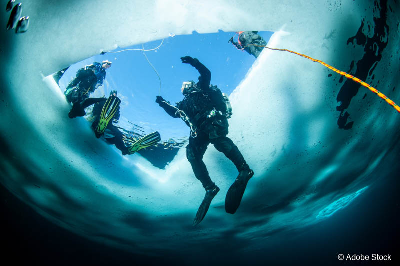 Die Bedingungen sind anspruchsvoll – Trockentauchanzug und Erfahrung im Kaltwasser sind Pflicht. Doch die Belohnung ist einzigartig: Tauchen an Eisbergen, unter gefrorenen Flächen oder in arktischen Kelpwäldern ist ein Erlebnis, das sich tief einprägt. Jede Region hat ihren eigenen Charakter: Grönland mit seinen gewaltigen Eisbergen, Norwegen mit spektakulären Fjorden und Wracks, Island mit vulkanischen Strukturen und die Antarktis als ultimative Herausforderung.