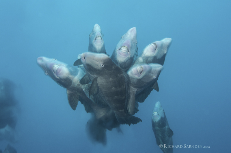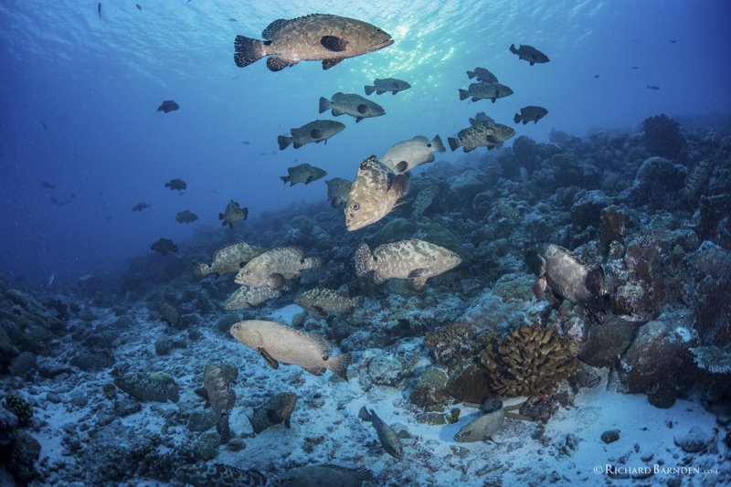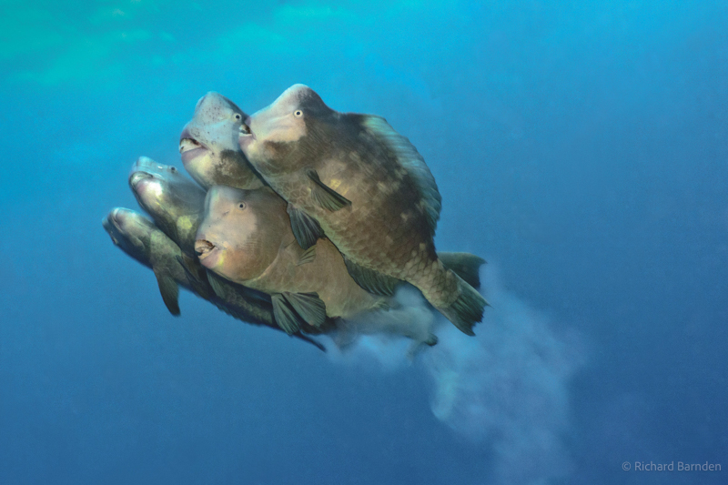 Richard Barnden führt und fotografiert seit fast zwanzig Jahren Meereslebewesen, vor allem im Pazifischen Ozean. Seine Leidenschaft gilt Laichansammlungen und Blackwater-Nachttauchgängen. Nachdem er eine große Sammlung von Daten und Fotos von Laichansammlungen angelegt hatte, verbrachte er die letzten zehn Jahre damit, diese und ihre Vorhersagbarkeit zu erforschen. Im Im Jahr 2015 stellte Richard ein bahnbrechendes Tauchteam zusammen, um den Zeitpunkt des Laichens des Getarnten Zackenbarsches (Epinephelus polyphekadion) in Palau zu bestimmen, wofür er fast sieben Jahre brauchte. Drei Jahre später, im Jahr 2018, stellte Richard auch ein Team von JJ-CCR Kreislaufgerätetauchern zusammen, um zu versuchen, einige der Ähnlichkeiten und Unterschiede zwischen derselben Zackenbarschart, die in Fakarava, Französisch-Polynesien, und im Ulong-Kanal, Palau, laicht, aufzudecken. Obwohl er in erster Linie das Laichen der Zackenbarsche dokumentieren wollte, war Richard auch in Fakarava, um das Jagdverhalten der Haie zu beobachten, das Laurent Ballesta und sein Team einige Jahre zuvor entdeckt hatten. Diese Expedition führte dazu, dass Richard mit seiner Aufnahme „The Gauntlet“, die zwei Graue Riffhaie zeigt, die nachts einen verängstigten Papageienfisch zerfleischen, zum Unterwasserfotografen des Jahres und zum britischen Unterwasserfotografen des Jahres 2019 gewählt wurde. http://www.richardbarnden.com/