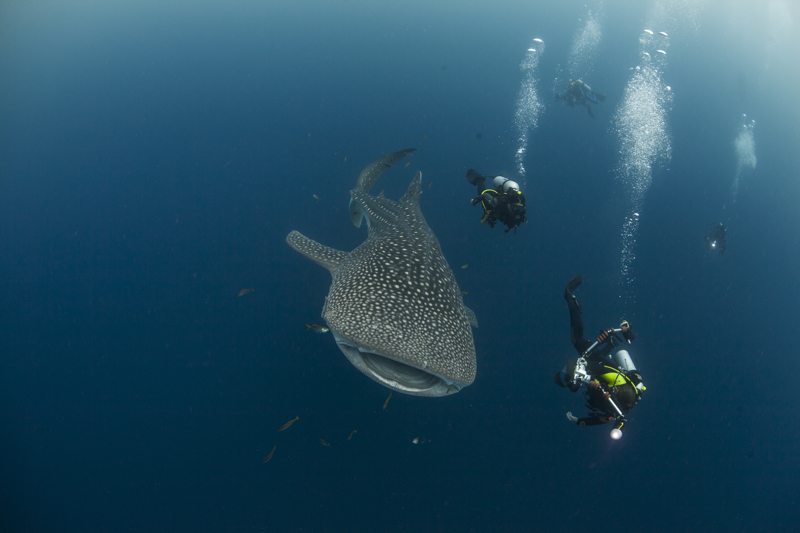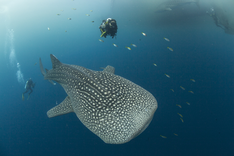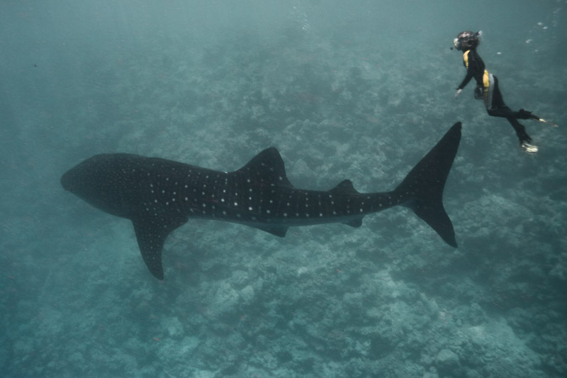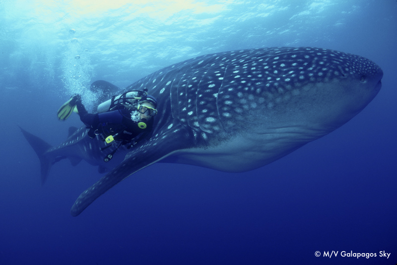 Die Chance, einen Walhai in Galápagos zu sehen, ist untrennbar mit Tauchsafaris verbunden, da die abgelegenen Tauchspots nur mit spezialisierten Schiffen erreicht werden können. An den Steilwänden von Darwin und Wolf ziehen die nährstoffreichen Strömungen nicht nur Walhaie, sondern auch eine Vielzahl anderer Großfische wie Hammerhaie, Mantarochen und Schildkröten an.
