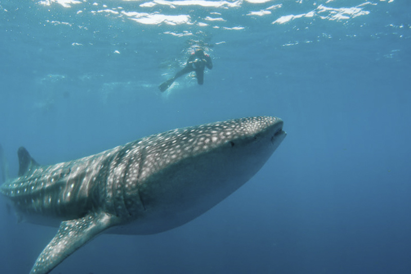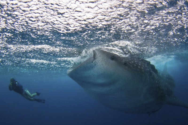 Walhaie ernähren sich von Plankton, kleinen Fischen und Krill und sind für Menschen völlig ungefährlich. Beim Schnorcheln oder Tauchen sollte man dennoch vorsichtig sein, um die Tiere nicht zu stören oder zu verletzen. Respektvolles Verhalten und der Schutz ihrer natürlichen Umgebung sind von größter Bedeutung.