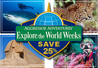 Die alljährlichen Aggressor Explore The Wold Weeks bieten - 25 % Rabatt auf die untenstehenden Touren rund um den Globus.