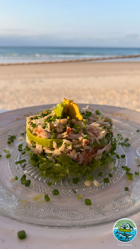 Das nächste Etappenziel war dann das Corasiida Guesthouse und Tofo Scuba, wo ich meinen Gewinn einlösen konnte. Die Unterkunft war zweckmäßig eingerichtet und lag direkt am unendlichen und menschenleeren Sandstrand von Tofo. Direkt nebenan sind die Tofo Scuba mit der Tauchbasis und einem Restaurant, wo es Frühstück und ggf. einen Mittagslunch gab.
