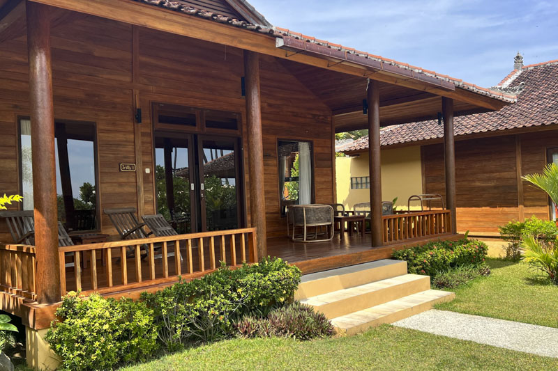 Wir haben 3 Hotels im Osten im Portfolio. Die Lotus Bungalows haben mit den Gangga Divers eine tolle Tauchbasis, sind aber leider auch schon ein bisschen in die Jahre gekommen. Man hat sich während meines Aufenthalts rührend um mich und die anderen Gäste gekümmert, aber dennoch braucht es dringend die eine oder andere Renovierung. Es gibt „nur“ 2- oder hin und wieder 3-Tank Ausfahrten. Ebenso ergeht es dem Puri Bagus, das eine Orca Tauchbasis mit super nettem Staff direkt im Hotel hat. Hier gibt es zusätzlich auch Fischerboote, die vom Hotel aus starten. Die Fischer bieten auch Schnorchelausflüge an.