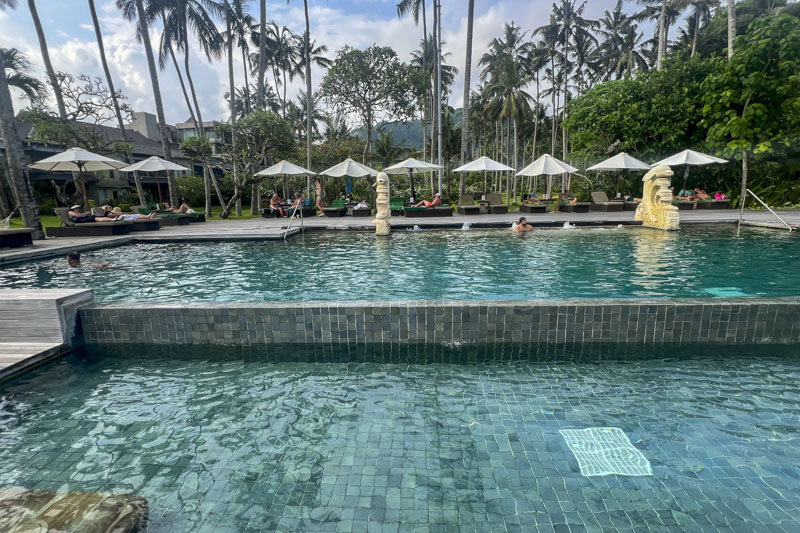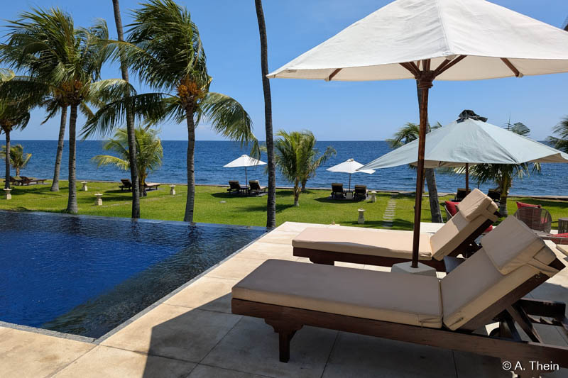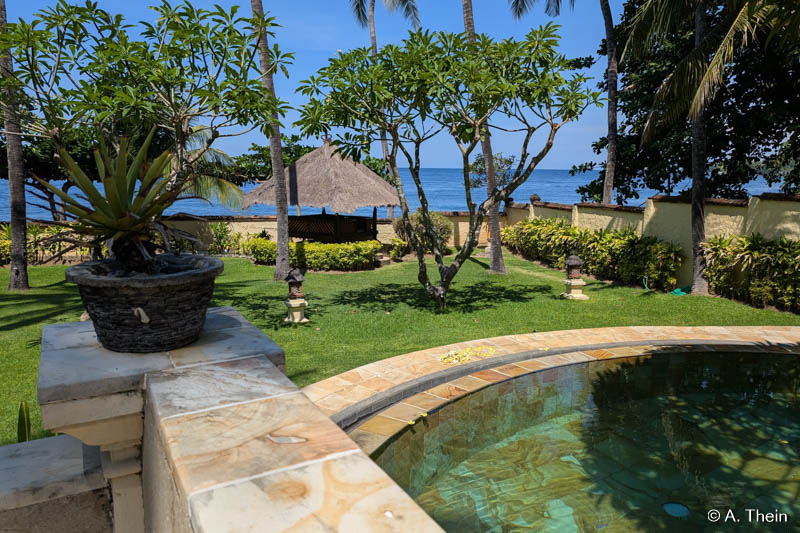 Das Hotel selbst ist eine weitläufige Anlage mit sehr schönem Garten und vielen verschiedenen Unterkünften in jeder nur erdenklichen Kategorie bis hin zum private Pool. Und es gibt einen Strand! Perfekt für einen Kurzaufenthalt im Osten Balis.