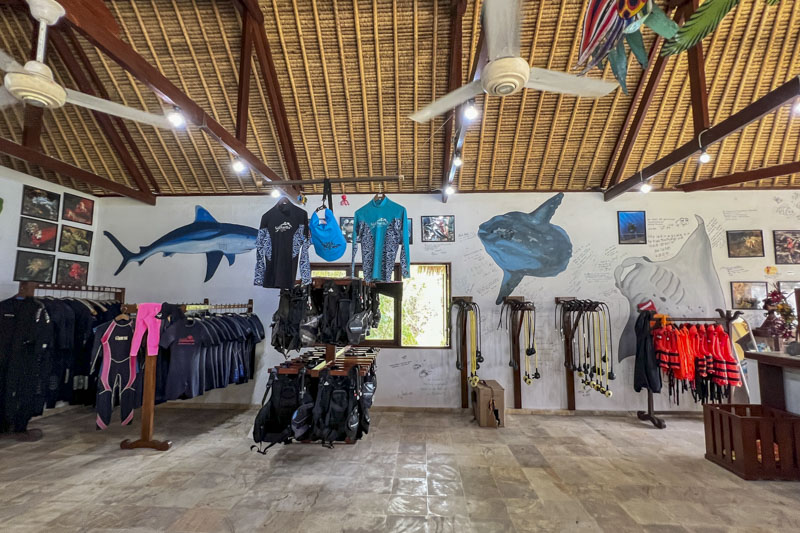 Mein Favorit hier im Ort ist das Candi Beach Resort & Spa mit der diving.de Basis, die Andreas professionell leitet. Es gibt Ausleger-Tauchboote im Stil der Fischerboote (nur etwas geräumiger und größer), die vom Resort aus starten und es werden auch die Ausfahrten vom Hafen mit den Gangga Divers oder anderen großen Booten für 2-Tank Dives angeboten.