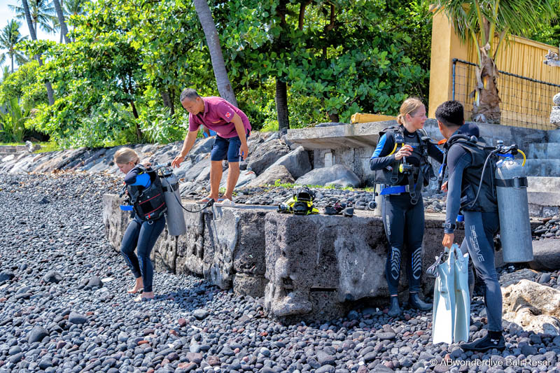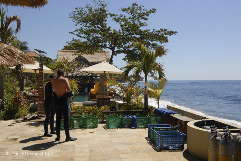 Für Taucher im Norden (Region Tulamben) ist es wichtig zu wissen, dass die meisten Resorts kein eigenes Boot haben und die Boots-Ausflüge mit traditionellen Fischer/Auslegerbooten gemacht werden. Kann das Boot nicht ganz an den Strand fahren, muss man u.U. hineinwaten oder schwimmen, da Stege nicht erlaubt sind. Alternativ gibt es Ausfahrten mit Minibussen zu verschiedenen Strand-Tauchgängen in der näheren und weiteren Umgebung. Deshalb ist es wichtig feste Booties oder Füßlinge zu verwenden, da die Einstiege oft steinig und wackelig sind.