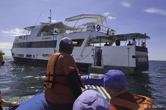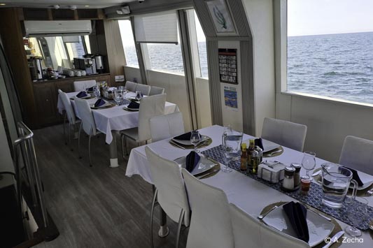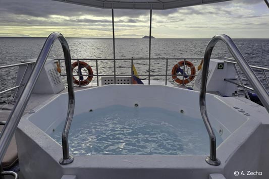 Tauchsichtungen: Hammerhaie (bis zu 200 Stück auf ein Mal), Galapagos Haie, Schwarzspitzen Haie, Walhaie, Delphine, Adlerrochen (bis zu 20 Stück auf ein Mal), Manta Rochen, Mamor-Zitterochen, Seelöwen, Schildkröten, Barrakuda und Makrelen Schwärme, Seesterne, Moränen und vieles mehr.