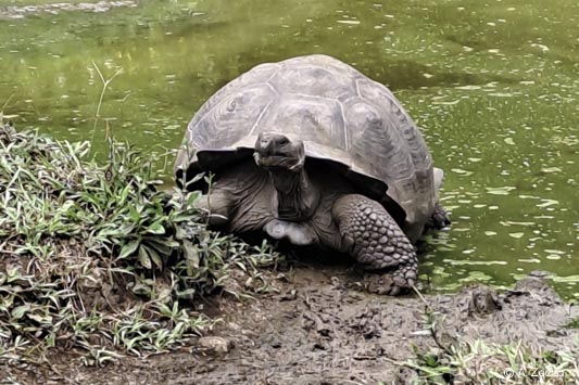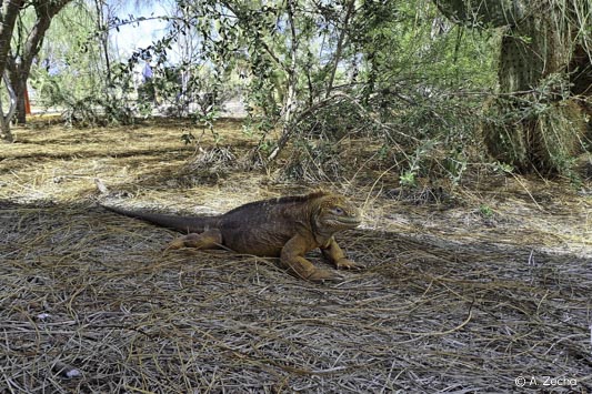 Nach Ankunft in Baltra wird man schon am Flugvorfeld von den Leguanen begrüßt, diese laufen überall frei herum. Nachdem man über einen Seuchenteppich gegangen ist, geht es zur Einreisekontrolle. USD 100 werden von Ausländern für den Galapagos-Nationalpark fällig. (Kinder bis 12 Jahre zahlen die Hälfte). Ab 1.8.24 wird diese Gebühr verdoppelt!