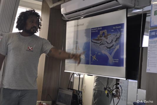 Die Tauchbriefings können mit ein bisschen mehr Elan passieren. Und da die Voraussetzung an der Teilnahme mindestens 100 geloggte Tauchgänge ist, muss nicht vor jeden Tauchgang die Handzeichen wiederholt werden. Diese sollten schon sitzen.