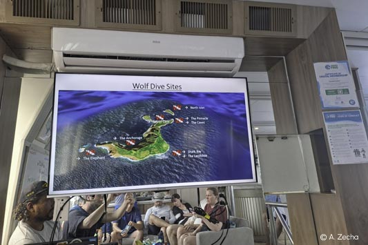 Tauchplätze: Baltra, Mosquera Island, Wolf Island (Coral Reef, Shark Bay, Landslide, Secret Cave), Darwin Island (Darwin Pillars), Santiago Island (Cousins Rocks)