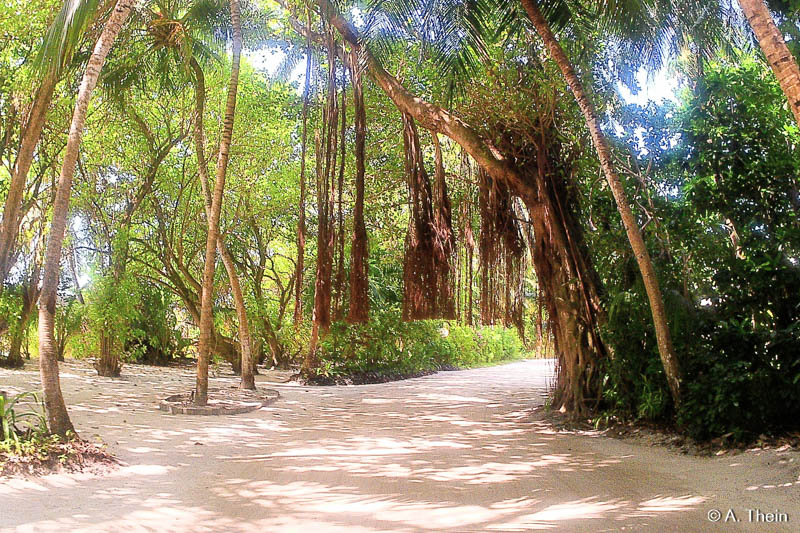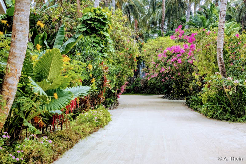 Das Kuramathi Maldives liegt im Rasdhoo Atoll, einem eher kleineren Archipel. Was gleich auffällt bei der Ankunft ist die üppige Vegetation, die zwar täglich von früh bis abends gepflegt wird, aber natürlich belassen wird, was einen besonderen Charme hat. Auch meine Lieblinge an Land, die Flughunde, fühlen sich hier natürlich puddelwohl! :))