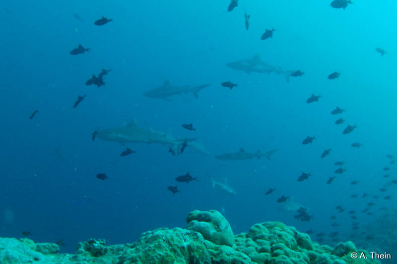 Auf einer Tafel sind die geplanten Tauchgänge für den nächsten Tag angeschrieben. Du trägst dich ein mit Zimmernummer, welche Flasche + Füllung und Boxnummer. Dann steht immer alles wie gewünscht für dich bereit. Early-Morning-Dives und Nachttauchgänge werden ab 2 Personen angeboten, aber auch Halbtagsausfahren nach Nord-Ari mit 2 Tauchgängen oder Ganztagesausfahrten mit 3 Tauchgängen. Die Tauchgänge sind alle Strömungstauchgänge und es wird immer vorab geschaut, wie stark die Strömung ist, bevor man ins Wasser geht. Es gibt einige tolle Tauchspots in der Nähe, wie Madivaru oder Manta Block, die man auch gerne mal öfter besuchen kann.