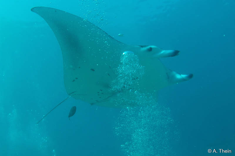 Für mich speziell großartig war, dass man ab dem ersten Tauchgang immer denselben Guide hat. In meinem Fall war das Ybbe, der seit über 15 Jahren dort taucht und jede Koralle kennt. Er hat mich gleich unter seine Fittiche genommen, mir laufend Tipps gegeben und mich aber auch gepusht und gefordert, z.B. indem er spontan mich die SMB aufblasen hat lassen. ;) Ich kann nur soviel sagen: Beim ersten Tauchgang hatte ich 6 kg, damit ich leichter abtauchen kann, und beim letzten Tauchgang nur mehr 3 kg, weil ich soooo entspannt war.