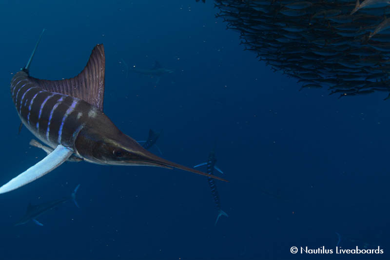 auch bekannt als „Speerfische“, sind faszinierende Bewohner der Ozeane, die für ihre beeindruckenden Geschwindigkeiten von bis zu 82 km/h und akrobatischen Sprünge bekannt sind. Mit ihren schlanken Körpern und markanten langen Schnäbeln, „dem Speer“, sind sie eine beeindruckende Erscheinung im offenen Meer. Diesen majestätischen Jäger zufällig zu begegnen, bedeutet mehr als nur unglaubliches Glück, da sie Hochseefische sind und in Riffnähe nicht anzutreffen. Zu ihrer Beute zählen riesige Schulen von Makrelen und Sardinen, weshalb es sie jährlich im Oktober und November in die Magdalena Bay an der Westküste der Baja California zieht.