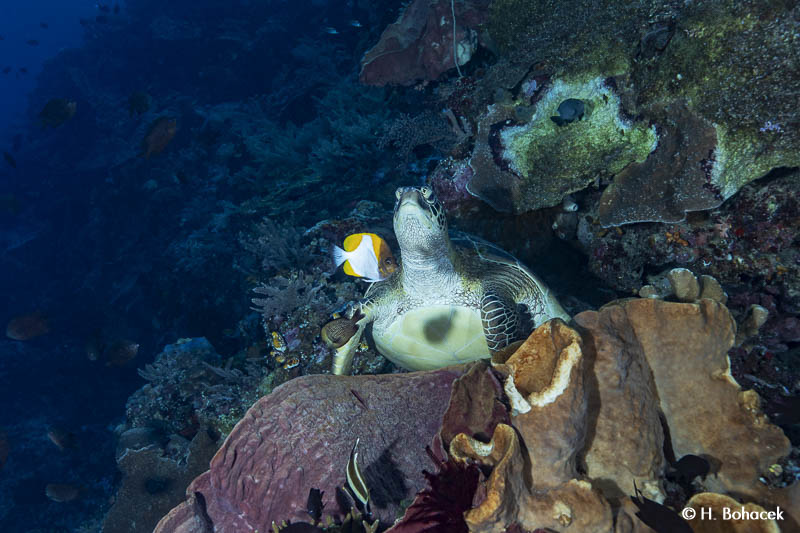 Also galt es volle Konzentration aufs Tauchen vom Schiff aus, was auf 4 Tauchgänge fast jeden Tag hinauslief. Mit dem Schwerpunkt Makro mussten wir (schön, dass ich so nette Buddies auf dem Schiff fand) unsere Augen manchmal sehr anstrengen, um die grandiosen winzigen Kreaturen unter Wasser zu erkennen. Und dabei mussten wir aufpassen, nicht die größeren Fische wie Adlerrochen, Napoleons, Thunfische, Haie usw., die „so nebenbei“ vorbeischwammen, zu übersehen.