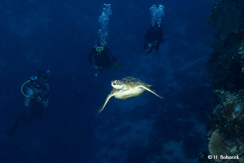 Als ich bei einem Tauchgang dann 34 grüne Meeresschildkröten zählte, konnte von Übersehen natürlich nicht mehr die Rede sein. Aber es kam wie es kommen musste, die Zeit war zu kurz und die Heimreise musste angetreten werden und ich muss mich eine Weile wieder mit dem Träumen vom Tauchen zufriedengeben.«