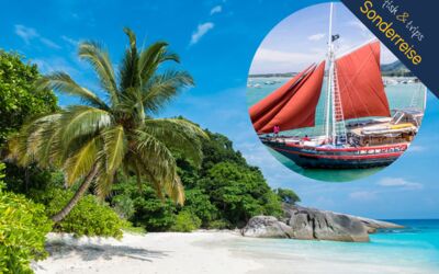 Die Similan & Surin Islands sind die Tauch-Schätze Thailands und der legendäre Richelieu Rock, den wir bei dieser Sylvester-Tour mit der Thailand Master von 30.12.2026 bis 05.01.2027 ebenfalls besuchen, gilt überhaupt als der beste Tauchplatz Thailands. Die Topografie der Inseln in den geschützten Nationalparks ist beeindruckend. Sie erwarten ihre Besucher mit üppiger Vegetation auf den Inseln, Granitwänden und -formationen sowie weißen Stränden, umgeben von klarem, blauem und v.a. warmen Wasser. Die Safari startet in Khao Lak und endet in Phuket.