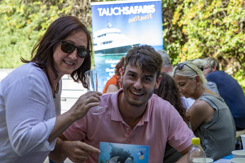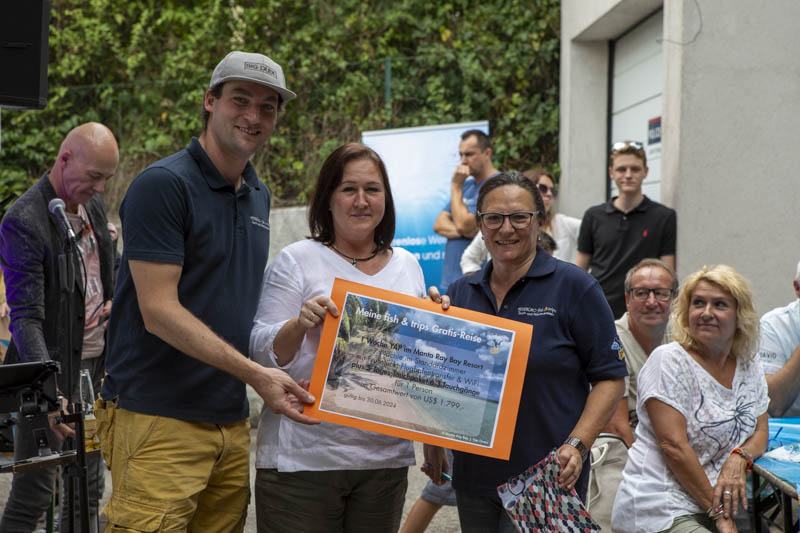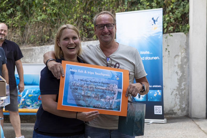 Dank der tatkräftigen Unterstützung vieler langjähriger Partner fand beim Sommerfest auch der Höhepunkt der riesigen 20-Jahre-Tombola mit sensationellen Reisepreisen statt. Von Tauchpakete in Ägypten und Indonesien bis hin zu einer Woche Yap, 8 Nächten Philippinen, 9 Nächten Bali & Komodo bis hin zu einer Silvester-Tauchsafari in Ägypten gab es Preise im Wert von über 20.000,– € zu gewinnen. Ein paar der glücklichen Gewinner waren bei der Verlosung auch vor Ort und durften sich gleich direkt beim Sommerfest über ihren Preis freuen.
