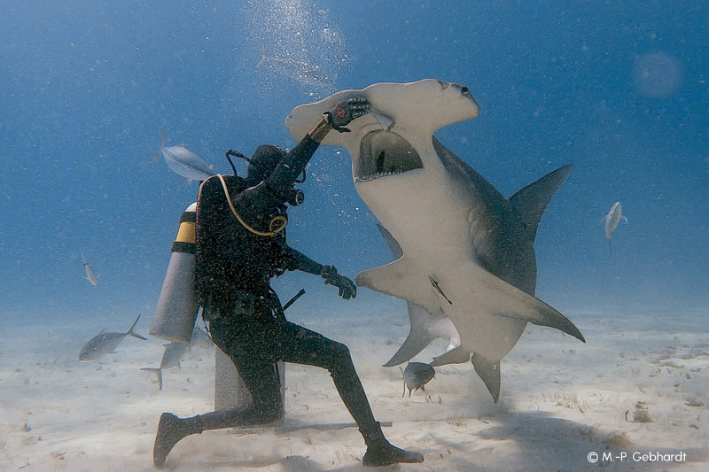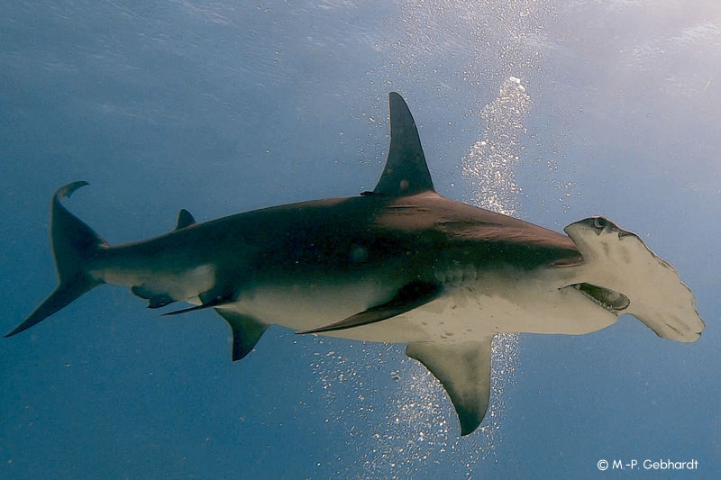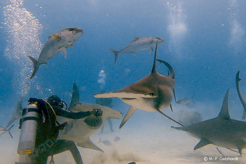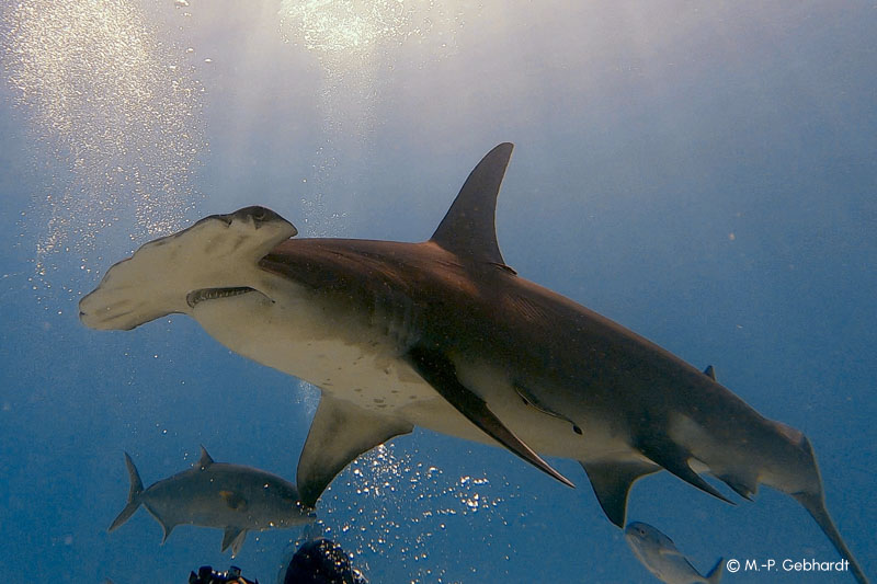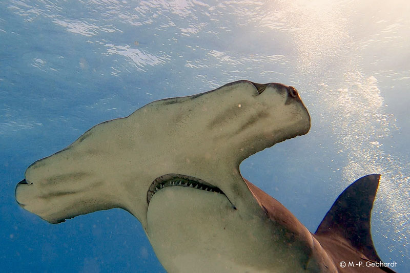 Mit max. 16 Tauchern geht’s dann auf Halbtagesfahrten. Insbesondere bei der Hammerhai-Safari wird sehr ausführlich gebrieft – man merkt, dass das Team sehr eingespielt ist und die Safety-Diver sich unter Wasser fast blind verstehen. Es wird sehr auf Sicherheit geachtet.