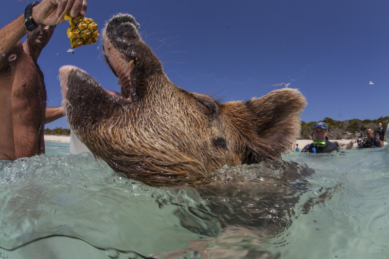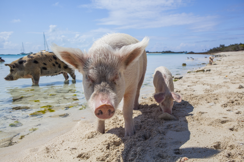 Die schwimmenden Schweine der Bahamas sind eine außergewöhnliche Attraktion auf den Exuma Cays, einer Inselgruppe der Bahamas. Diese wild lebenden Schweine haben sich erstaunlicherweise an das Leben im Wasser angepasst und schwimmen gerne zu Booten, um Futter von den Besuchern zu empfangen. Die genaue Herkunft der Schweine bleibt ein Rätsel: Eine Theorie besagt, dass sie von Schiffbrüchigen auf der Insel ausgesetzt wurden, eine andere, dass sie von lokalen Fischern auf die Inseln gebracht wurden. Unabhängig von ihrem Ursprung sind die Schweine mittlerweile ein fester Bestandteil der lokalen Tierwelt und ein Highlight für Touristen. Die Insel Big Major Cay, auf der die Schweine am häufigsten anzutreffen sind, hat sich zu einem beliebten Ziel für Reisende aus der ganzen Welt entwickelt. Es wird berichtet, dass die Schweine nicht nur schwimmen, sondern auch schwimmen lernen, um sich Nahrung zu verschaffen, was sie zu einem faszinierenden Beispiel für tierische Anpassung macht.