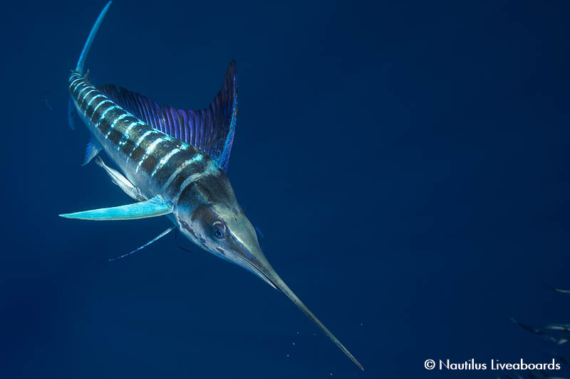 Gestreife Marline, auch bekannt als „Speerfische“, sind faszinierende Bewohner der Ozeane, die für ihre beeindruckenden Geschwindigkeiten von bis zu 82 km/h und akrobatischen Sprünge bekannt sind. Mit ihren schlanken Körpern und markanten langen Schnäbeln, „dem Speer“, sind sie eine beeindruckende Erscheinung im offenen Meer. Diesen majestätischen Jäger zufällig zu begegnen, bedeutet mehr als nur unglaubliches Glück, da sie Hochseefische sind und in Riffnähe nicht anzutreffen. Zu ihrer Beute zählen riesige Schulen von Makrelen und Sardinen, weshalb es sie jährlich im Oktober und November in die Magdalena Bay an der Westküste der Baja California zieht