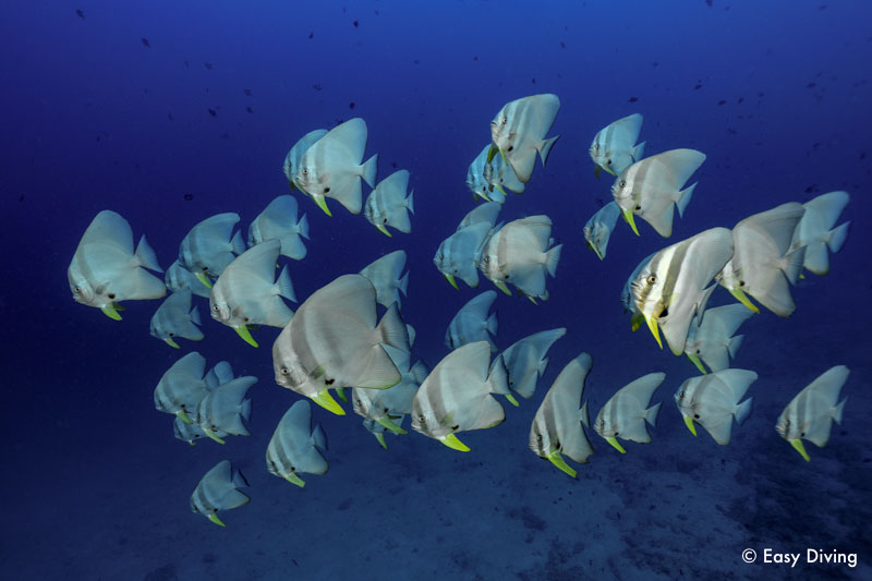 Die mehr als 20 Tauchplätze im Bacuit Archipel sind ein ideales Revier für Einsteiger und können das ganze Jahr betaucht werden. Als erfahrener Taucher kommst du bei einem Tunnel-Tauchgang auf deine Kosten. Die Riffe rund um El Nido sind meist flach abfallende Hänge, es gibt aber auch Steilwände, Plateaus und eindrucksvolle Felsformationen. Die Sichtweiten rangieren von 8 m (Planktonblüte von Dezember bis April) bis 30 m (von Mai bis November). Die beste Saison für Mantas und Walhaie ist von Dezember bis April.