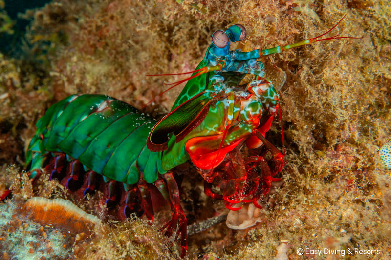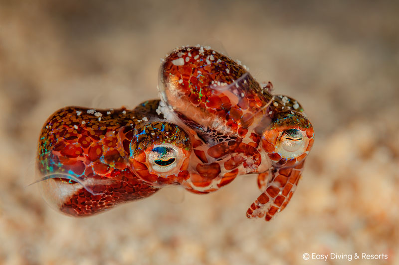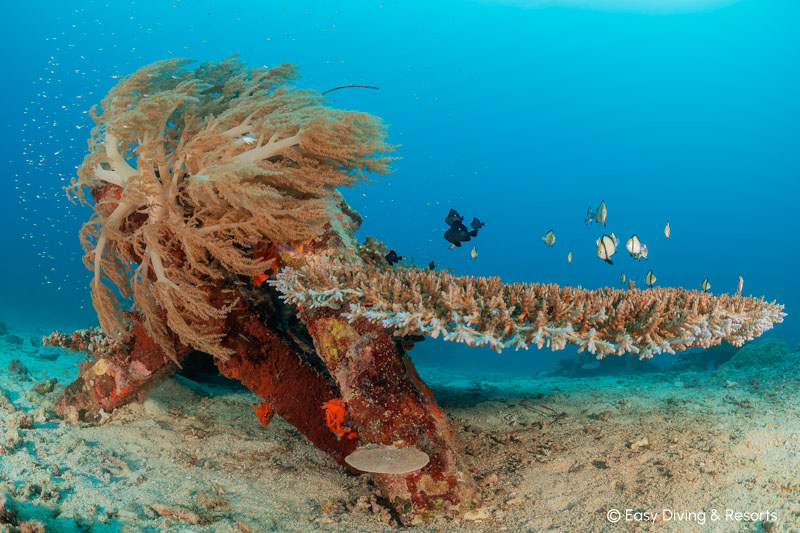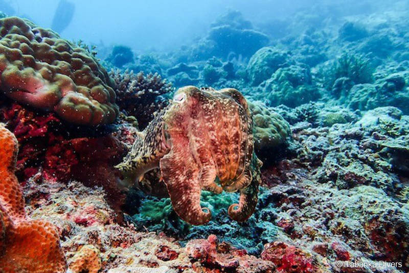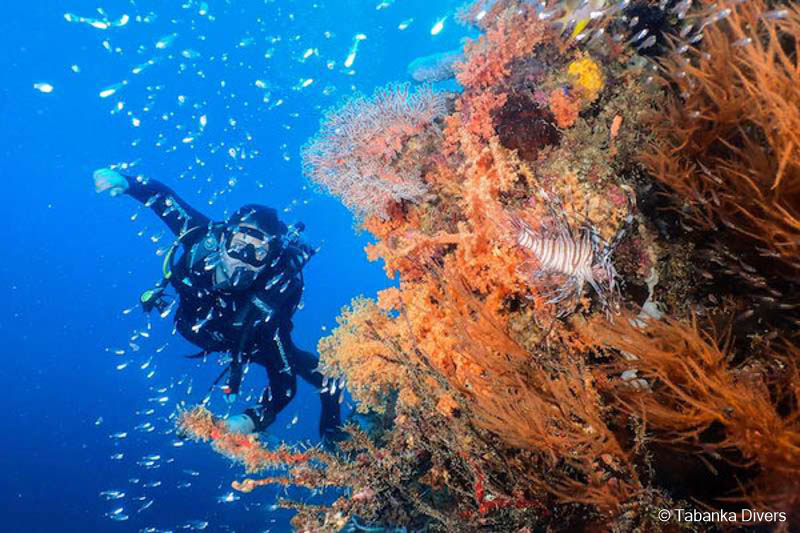 Rundum gibt es ca. 50 hervorragende Tauchplätze für Makro & Muck. Aber auch ein Wrack, eine Höhle, sowie farbenfrohe Riffe sind vorhanden - so kommen auch Schnorchler auf ihre Kosten. Ein wirkliches Paradies für Makro-Liebhaber und Fotografen. Neben genialen Tauchplätzen gibt es im Resort einen Kameraraum, der sich sehen lassen kann. 18 Kameraplätze mit Luftdusche, Lademöglichkeiten, Schreibtischen, Schließfächern und 4 Spülwannen!