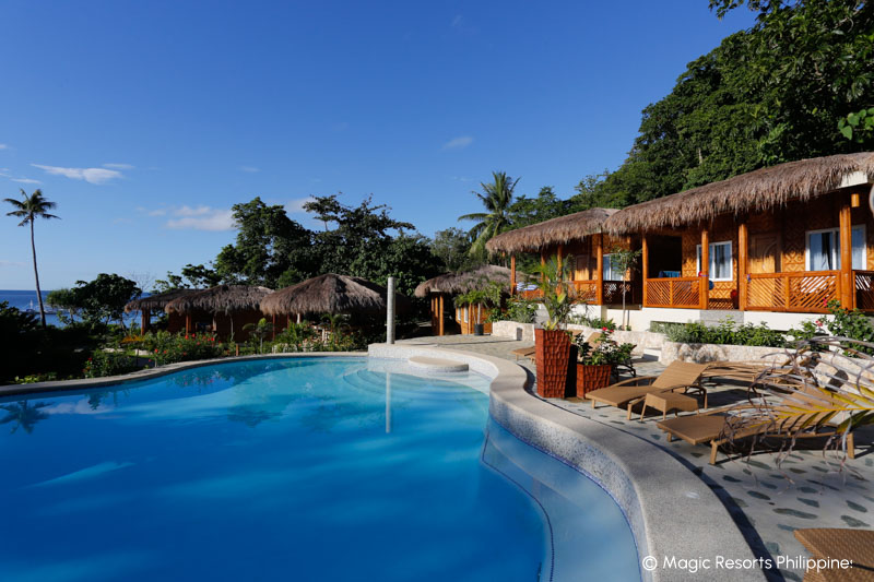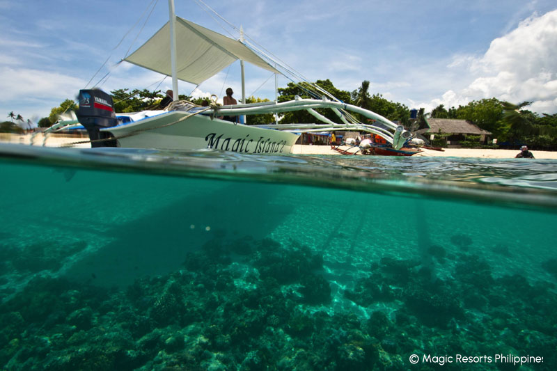 Das gemütlich eingerichtete Magic Island Dive Resort liegt in traumhafter Lage im südlichen Teil der Halbinsel Moalboal und verfügt über 10 Bungalows mit eigenem Balkon eingebettet in einen tropischen Garten. Das abwechslungsreiche Hausriff beginnt mit einem Plateau in fünf Metern Tiefe und bietet regelmäßig Schildkrötenbegegnungen und bei Dämmerungstauchgängen können fast immer Mandarinfische beobachtet werden. Die schönsten Tauchplätze in Moalboal, wie Pescador Island, liegen nur 5–10 min mit dem Boot entfernt. Nicht weit von Moalboal entfernt befindet sich das kleine Dorf Oslob, das zum Schnorcheln und Tauchen mit Walhaien bekannt ist. Es ist zwar ein sehr touristischer Spot, aber für Gäste, die noch nie einen Walhai gesehen haben, stehen hier die Chancen sehr gut.