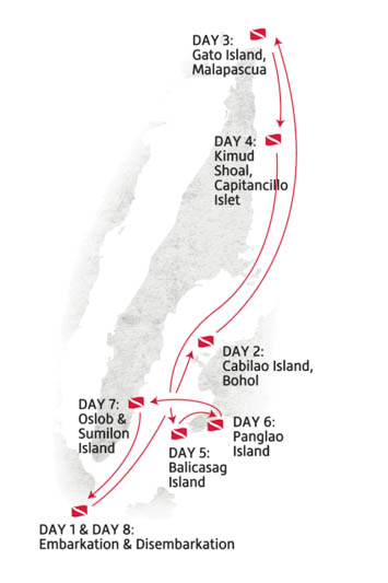 Es werden ganzjährig Tauchsafaris angeboten, die dich nach Tubbataha, Coron, Apo Island, Visayas, Cagayancillo Islands, Dauin, Balicasag, Cabilao, Malapascua Island, Moalboal und zu viele weitere Top-Spots in den Philippinen führen.